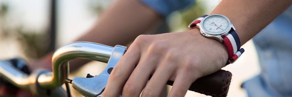 1. Thread the main strap through the watch's spring bars, behind the watch