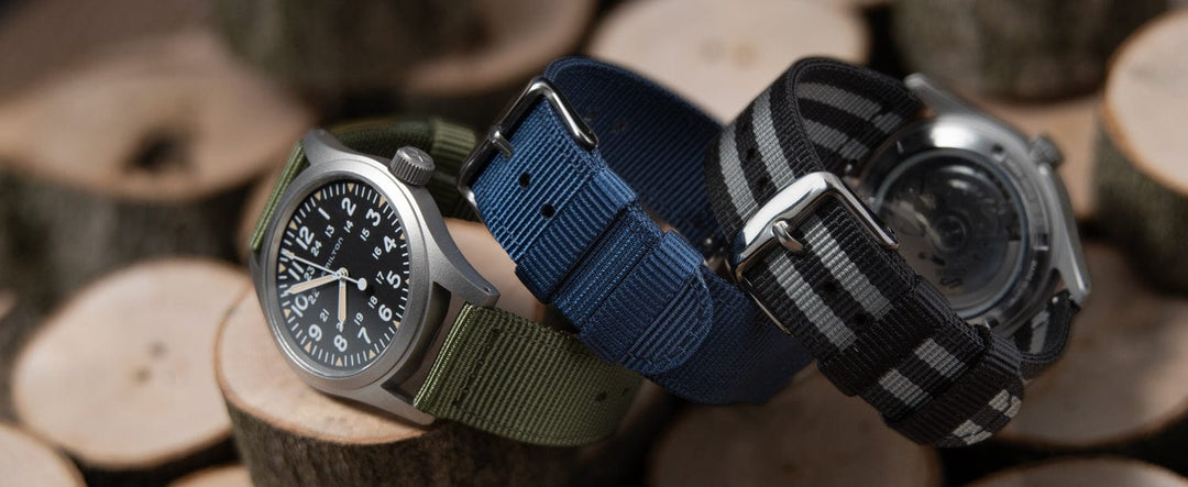 An evolution of our rugged traditional nylon strap, we used a smoother seat belt weave for a luxurious look and feel, while still channeling the classic military-style aesthetic.