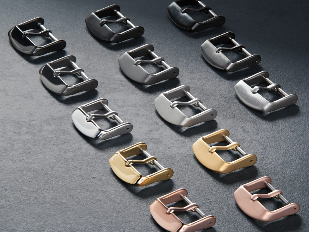 Every strap ships with premium stainless steel hardware. Want to change up the finish? Additional buckles and clasps are available in a range of colors to perfectly complement your watch.