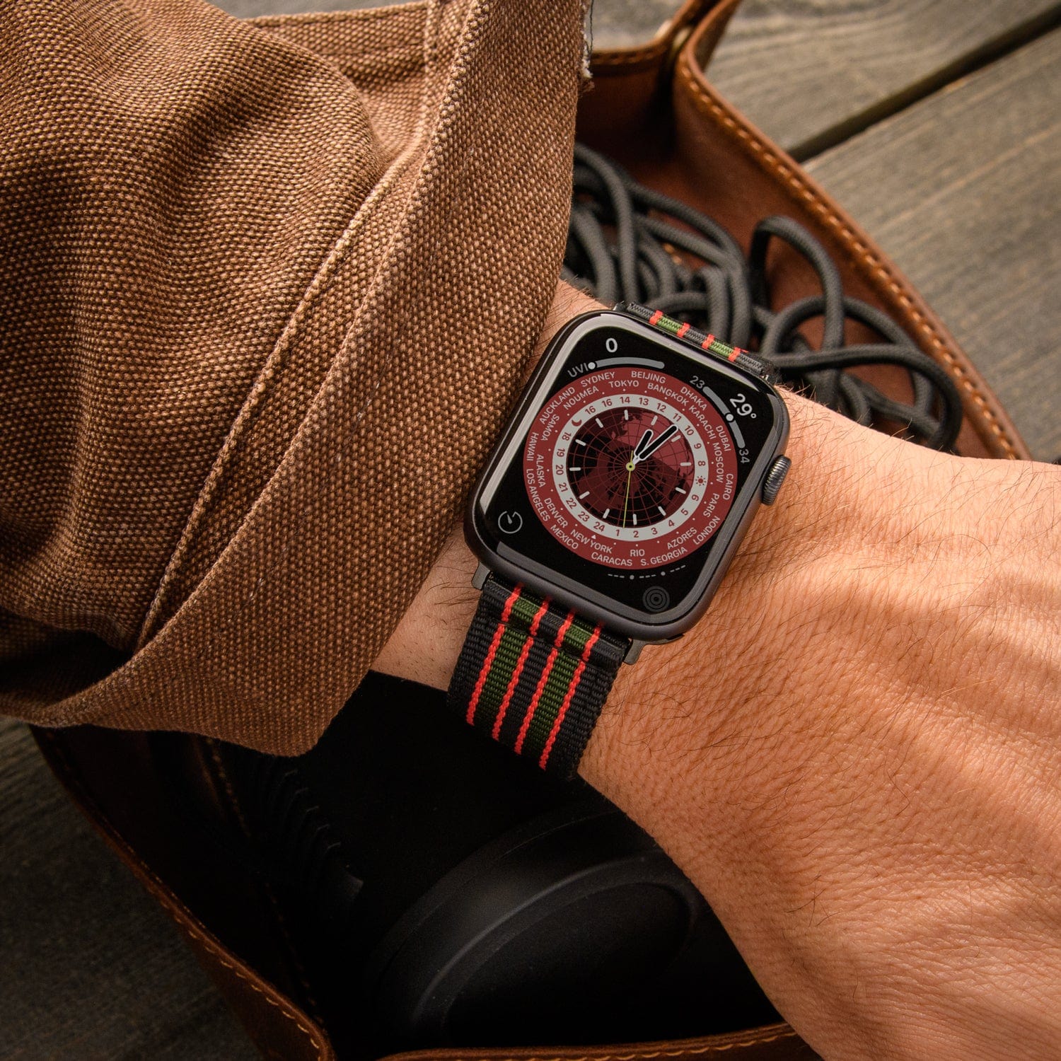 Apple Watch Nylon Watch Band - Black, Red, Green/Black
