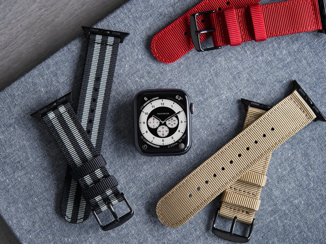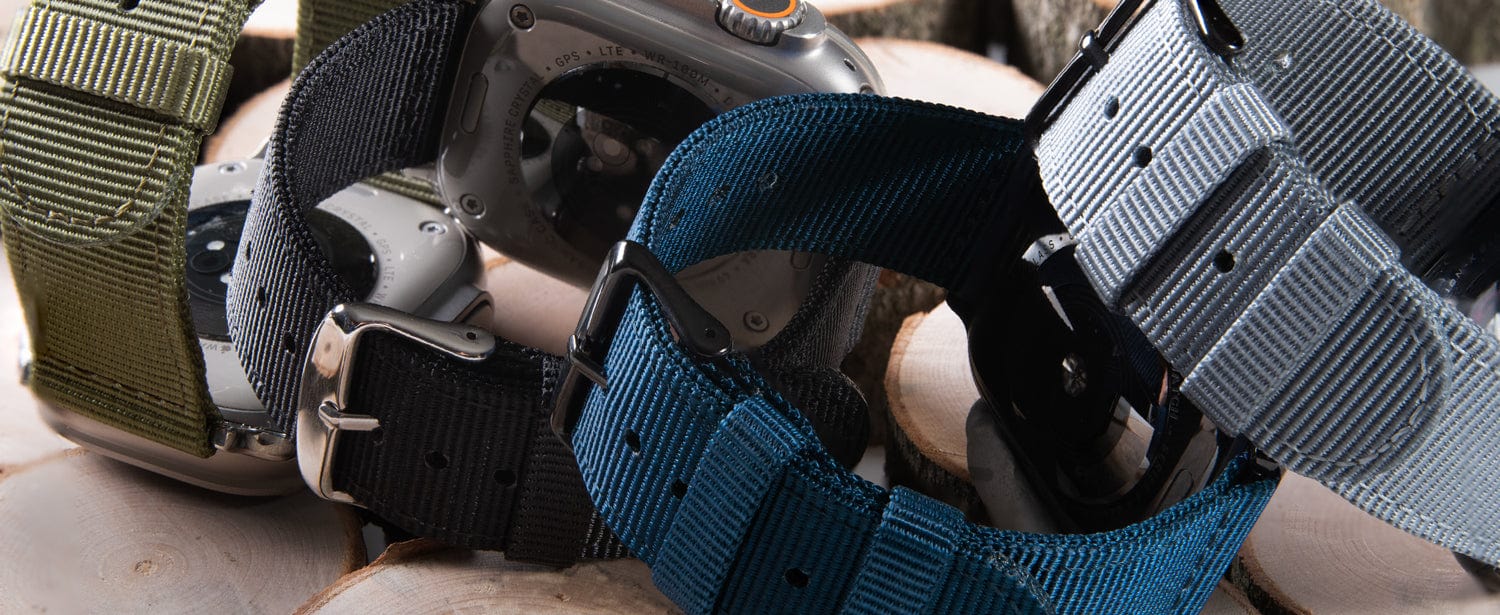 Our nylon straps are military style, but designed for modern tech. Unlike traditional one-piece military straps, these leave the watch’s back clear, ensuring seamless functionality.