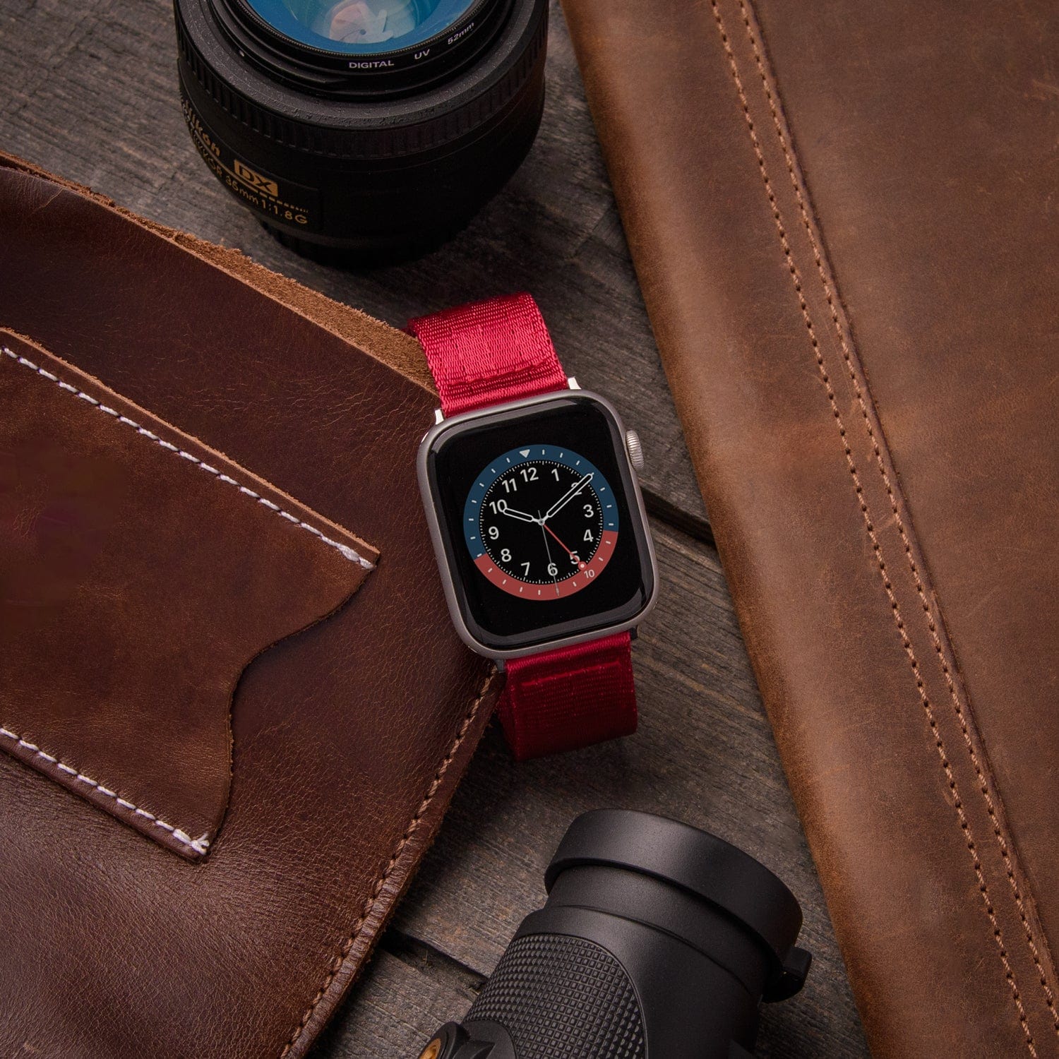 Apple Watch Seat Belt Nylon Watch Band - Red/Stainless