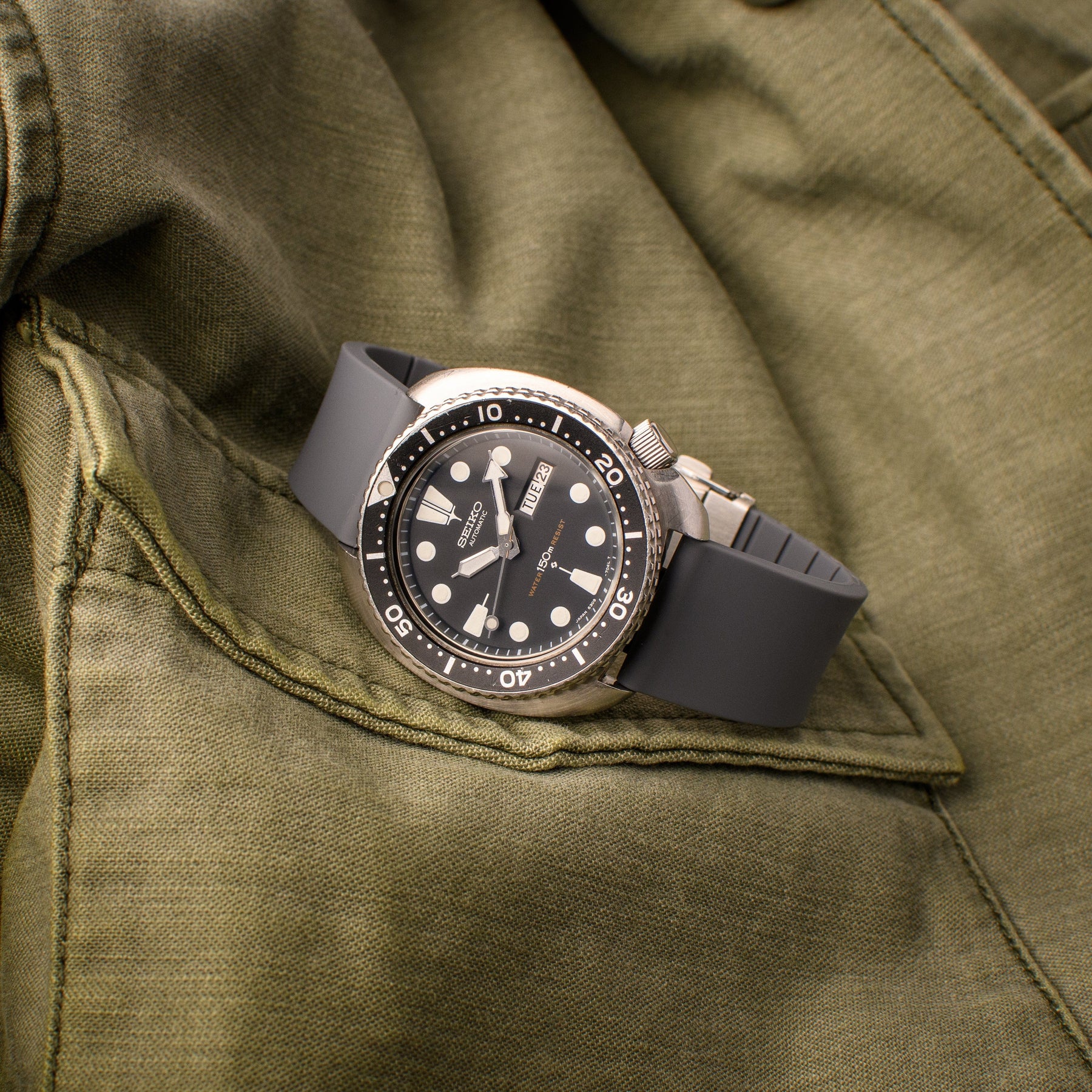 Our silicone is stupendously soft, and that silky smooth feel is what makes this the most popular material in our lineup. While others admire your handsome new strap, you'll hardly notice it's there.