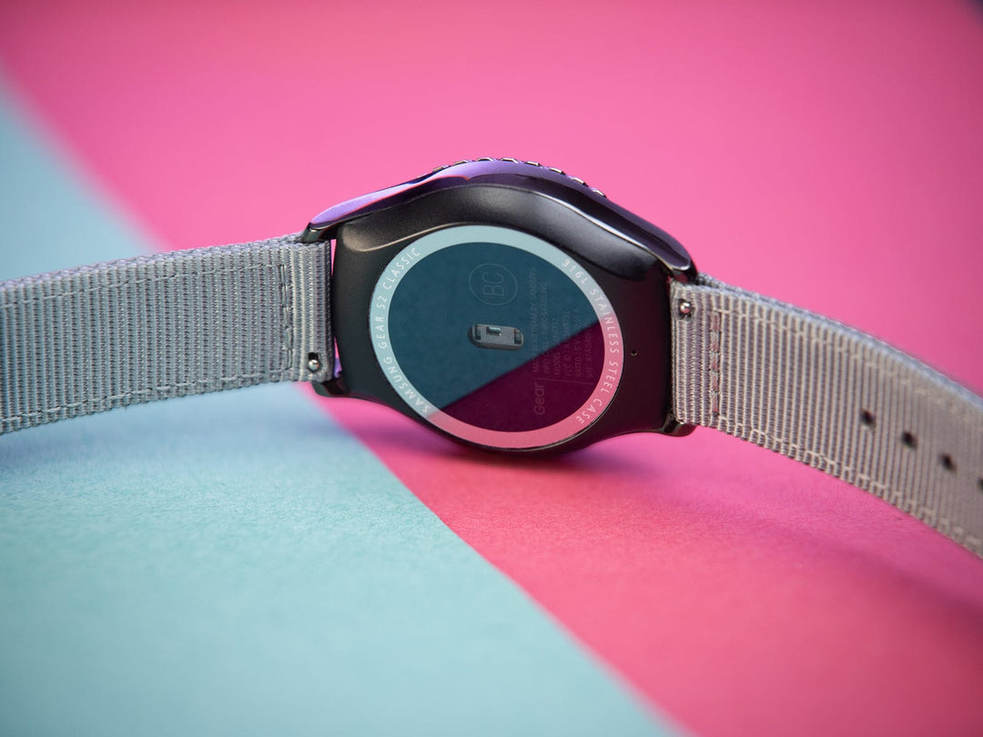 These two-piece nylon straps are military style, but unlike traditional one-piece military straps, they leave the back of your watch clear for optimal tech performance.