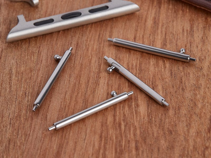 To install the buckle, use a pin or a spring bar tool to release the spring bar through the holes on the sides. Slot the spring bar into your strap and pop it back into the holes on the buckle.